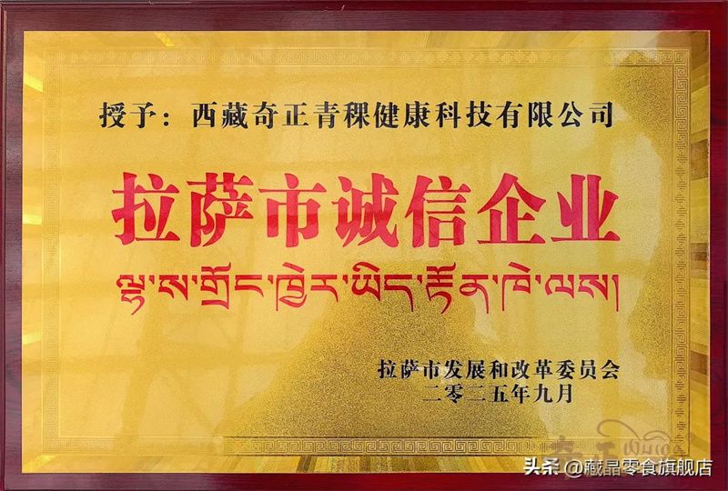 9月22日,拉萨市 2025 年诚信企业颁奖仪式隆重举行,西藏奇正青稞健康科技有限公司(简称奇正青稞)凭借在诚信经营、社会责任履行、产品品质把控等方面的卓越表现,脱颖而出,荣获 2025 年 “拉萨市诚信企业” 荣誉称号。这一荣誉不仅是对奇正青稞多年来坚守诚信原则的高度认可,更是其在青稞产业持续深耕、引领行业发展的有力见证。
